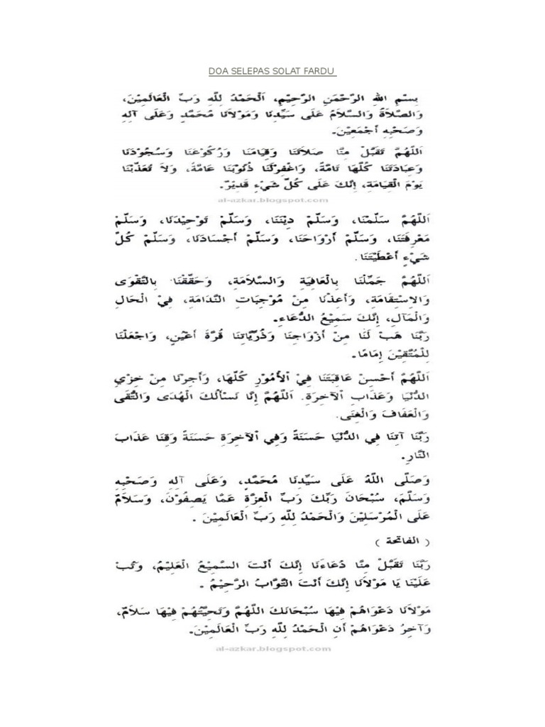 Selepas sembahyang, jangan lupa baca & ikut doa selepas solat fardhu 5 waktu ini. Kerana dengan berdoa kita menunjukkan kerendahan diri kita di hadapan allah, dan terhindar dari sifat sombong. Doa selepas solat 5 waktu. Arkib blog 2018 (4) mac (1) Bantuan audio dan ejaan dalam rumi juga disediakan bagi membantu anda.